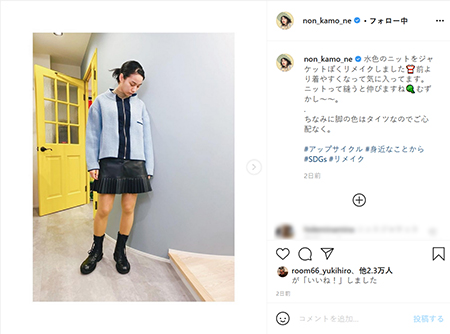 フォトニュース のん、リメイクコーデが「かっこいい」 「かっこいい」と反響を呼んでいるリメイクしたニットジャケット姿ののん。美脚も(Instagramより@non_kamo_ne) みんなの意見は?コメントを見る 関連写真・動画 この投稿をInstagramで見る のん(@non_kamo_ne)がシェアした投稿 写真一覧 みんなのコメント コメントを書く(ユーザー登録不要) この写真の記事を読むのん、リメイクコーデが「かっこいい」 レザースカートからは美脚も