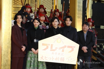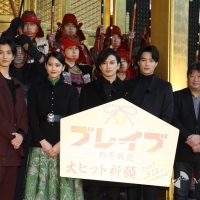 新田真剣佑、山崎紘菜、鈴木伸之、渡邊圭祐、本広克行監督が11日、東京・上野東照宮で映画『ブレイブ -群青戦記-』大ヒット祈願イベントに臨んだ。