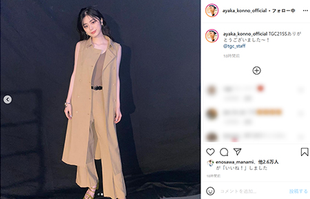紺野彩夏が、2月28日に更新したインスタグラムでTGCのオフショットを公開。ファンからは「美しい」と反響を呼んでいる。