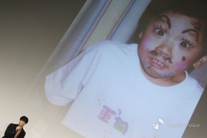 小関は、顔に落書きされた5歳の頃の写真。「ハロウィンから帰ってきて母親に落書きされたときの写真です。もうなりきっている。当時はケガばかりしている幼稚園児でした」と振り返った。
