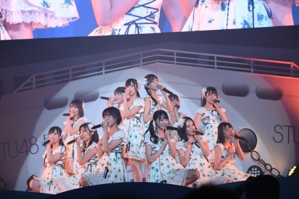 STU48が13日、広島市内で『4周年コンサート』を行った。昼夜2公演を実施。昼公演は『僕らはここからが凄いぞ!』を副題に2期研究生正規メンバー昇格企画を、『未来を探しに行こうか?』と副題にした夜公演では「夏の瀬戸内ツアー開催」を発表。昼夜合わせ全61曲を披露、4000人のファンを魅了し、5年目をスタートさせた。以下は昼公演。