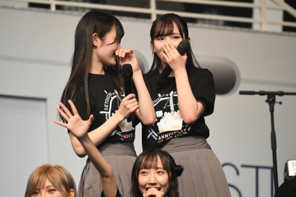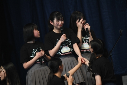 2期研究生の歓声と不安の入り混じった声が聞こえ、なかには涙するメンバーも。高雄さやかは「一生懸命頑張りたいと思います。応援お願いします」と意気込み。今村美月の「私たちも客席に座ってるかもしれないね」と笑わせながらも「5年目は1期生・ドラフト3期生・2期研究生で突っ走っていこうと思います」という力強いコメントで昼公演が終了した。