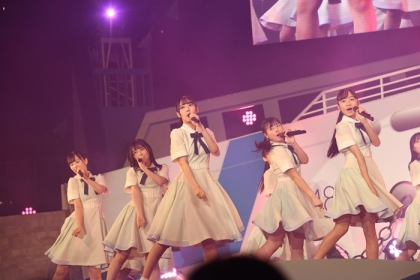 まだ記憶に新しい2期研究生オーディション時のVTRから始まり『僕の太陽』『僕らの春夏秋冬』。更に全員選抜5thシングル『思い出せる恋をしよう』、有観客では初披露となる6thシングルカップリング曲『僕はこの海を眺めてる』『そして僕は僕じゃなくなる』『サングラスデイズ』を続けて披露した。