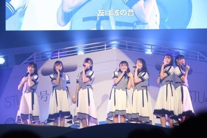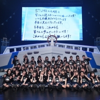 今村美月による「私たちの輝かしい未来に向かって出航」の合図と共にラスト曲『出航』を披露。副キャプテン福田朱里の「このような状況の中4周年を一緒にお祝いでき本当に嬉しいです。ファンの皆様に守っていただいてるんだなあと実感しました。これからもSTU48を宜しくお願いします」と挨拶し、4周年コンサートの幕を下ろした。