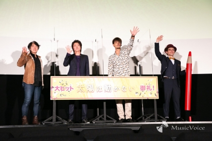 藤原竜也と竹内涼真が21日、都内で映画『太陽は動かない』(羽住英一郎監督)の公開御礼舞台挨拶に臨んだ。この日は羽住監督、そして特別ゲストとして映画プレゼンターの赤ペン瀧川が登壇した。