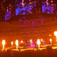 「みんな、よく来たね!会えて本当に嬉しいです。今日は最高の1日にするから最後まで宜しく!」と挨拶。そこからタイトなリズムとノイジーなギターが交差するカオティックな「スクラップ〜別れの詩」を、モノクロの映像と赤いレーザーが印象的な演出で披露。続く「ユーランゴブレット」ではセンターステージの内側から彼女の動きを追うカメラワークとカメラ目線のパフォーマンスが抜群のカッコ良さ。昨年からのコロナ禍でオンラインライブも新たな主流となった中、リアルタイムで届ける映像美は格段に進化しており、それがこうして有観客でのライブでも生かされるという新たなエンタメの在り方にワクワクさせられた。他にも「独白」ではエモーショナルな曲調に合わせてセンターステージに大迫力の火の玉が何度も上がったり、「躍動」では左右に伸びた花道上にブルーのLEDがゆらゆらと揺れていたりと、演出面でも見逃せない場面が次々と繰り広げられていく。