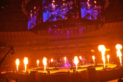 いよいよ終わりが近づいてくる。たくさんのシャボン玉の中で熱唱した「誓い」は、「10年前に世の中が大変だった時に作った曲です」と紹介された。<何を失っても 僕は生きていくだろう>という歌詞に、また新たな今とこれからへの想いを込めて歌われている気がした。そして最後は活動初期から愛され続けてきた人気曲「プラチナ」を披露して幸せ最高潮の状態で締めくくる。「また会う日まで、元気でねー!」と笑顔で最後の挨拶をすると、会場内には「ポケットを空にして」のインスト・バージョンが流れ、バンドのメンバーとみんなでステージの周りや花道をゆっくりと歩きながら別れを惜しんだ。いくつものライブでアンコールを彩ってきた「ポケットを空にして」だが、今回は坂本も観客も全員が心の中で歌っていた。今は歌うことができなくても、私たちには記憶の中のピースフルな大合唱が胸に響いていた。