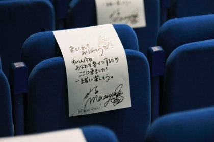 「今回のライブは満席というわけにはいかない形で開催しましたが、みなさんがここに来てくれたことが本当に嬉しいです。ステージがせり上がったり、火が出たり(笑)、私自身お祭りだと思って準備してきました。空席に貼ってあるメッセージは、実は2日ぶんの枚数を印刷したんですが、1日目のお客さんはほとんど持って帰らなかったそうです。きっと2日目も使うだろうからとみなさんが気を遣ってくださったんだと思います。いつも人を想いやる方達に支えられているなとあらためて感じました。よろしかったら今日は持って帰ってください」。そんなエピソードにも坂本とファンの関係性をしみじみと感じた。そして今回のライブは映像収録されて後にリリースすることを発表し、「少し先の未来でこの映像を見る人へ」向けたメッセージをライブ中に話してくれたので、参加できなかった人も楽しみに受け取ってもらいたい。そんな風に坂本真綾自身がいつだってファンへの思いやりを忘れずに活動してきたからこそ、人を思いやり、マナーを守るファンばかりなんだと思う。25年という長い歳月の中でそうやってひとつひとつ、築き上げてきたからこそ、観客全員がマスクをして歓声を上げられなくても楽しい祝祭空間を生み出すことができるのだ。