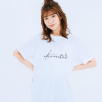小玉 Tシャツとワンピースを作りました。Tシャツは男女どちらの方にも着ていただけるようにシンプルで夏っぽくしたいなと思ったので、白地にメンバーのシルエットがロゴの周りにいるような感じにしました。丈の短い物と普通のサイズの二つを作らせていただいて、私が元々Tシャツ短めで脚が長く見えるようなスタイルが好きなんです。でも、「男性は普通のサイズの方が着やすいよなぁ」って悩んだ末に、「二つ作っていいよ」と言っていただいたので、ありがたく両方作らせていただきました。