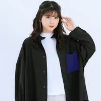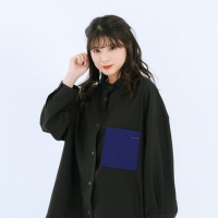 それと、前のボタンをスナップにしてもらって開けても閉めてもかわいい物になっていたり、襟元はノンカラーです。私、ノンカラーを着ている人が大好きで、街中にいると見ちゃうくらい好きなので、たくさんの方にノンカラーを着てほしいです。あとは私がシャツにアイロンを掛けるのが苦手で、この記事は洗って乾かしてもしわが付きにくい生地なので、男性の方でもピンッと着られます。