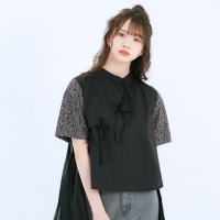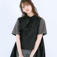三品 イメージ通りにできていて、ちゃんと私が普段着たい服になったなと思います。カットソーはチャイナシャツっぽくして、でもチャイナボタンではなくリボンでかわいらしさを入れました。後ろの丈を少し長くして、プリーツにしているんです。後ろからの見え方もかわいくなっています。袖のグレーのレースってあまりないんですけど、それを見つけて大喜びしました。