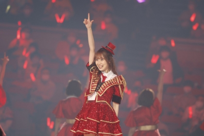 白いドレスを纏った高柳が「愛の数」を優しく歌い始めると、場内には高柳のメンバーカラー黄色と緑のペンライトが一面に広がり、優しい空気に包まれた。続き、全メンバーが各所から行進して入場。10期生が勇ましく旗を振り、コンサートタイトルにもある「兆し」をパフォーマンスした。「私の兆し、皆の兆し ~あかねまちゅりだ!~ in 日本ガイシホール 行くぞー!」と煽りを得意とする高柳の声に、メンバーの赤い衣装に合わせた客席も真っ赤に燃える。