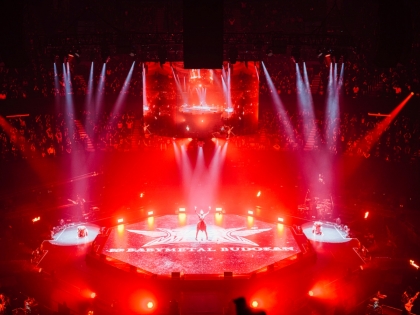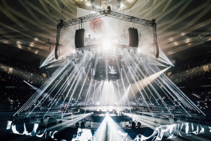 ライブのオープニングムービーでは今回の公演が「破壊と再生の物語」であることが告げられ、リビルドされた「BABYMETALDEATH」とともに、アリーナ一面に広がり紅く染まった雲海から、魔法陣の紋章に磔にされたメンバーが登場。炎も吹き上がり、衝撃的な儀式とともに幕を開けた。続いて「NHK紅白歌合戦」初出場での歌唱が印象に新しい「イジメ、ダメ、ゼッタイ」が披露され、早くもダメジャンプで会場がひとつとなった。360度ステージならではの演出で、変幻自在のフォーメーションで披露された代表曲「ギミチョコ!!」の後は、デビュー曲「ド・キ・ド・キ☆モーニング」を披露。初期の楽曲を今もなお新鮮な輝きを放ちながら披露するBABYMETALに会場から拍手が沸き起こった。