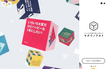 公式ホームページ内に自分の投稿したキボウがデザインされたKIBOU-CUBEが出現します
