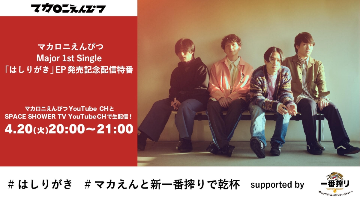 マカロニえんぴつが、4月20日20時より「はしりがき」の発売を記念した特番放送を生配信することが19日、わかった。