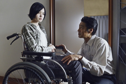 今回解禁する新写真では、拳銃を手に持ち、決意を固める力強いヒナコの姿や、宇津帆(堤真一)から殺された両親の死の”真相”を聞かされ、怒りと哀しみ、そして困惑が入り交じった複雑な表情をみせる場面写真に加えて、脚が不自由な役ということで、車椅子の扱い方の指導も受けたというヒナコがアキラと出会う公園のシーンのメイキング写真。