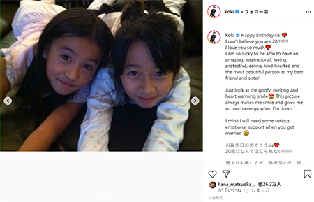 Koki,、姉・Cocomiの誕生日祝福 幼少期の写真公開