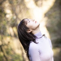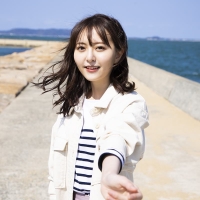 今回解禁されたカットのなかには、そのダブルピースをする姿もある。ピースを作り優しい表情を向ける姿が印象的だ。ほか海風に打たれる姿や浜辺での水着カットなど男性ファンのみならず、女性ファンもときめく自然体な姿が活写されている。