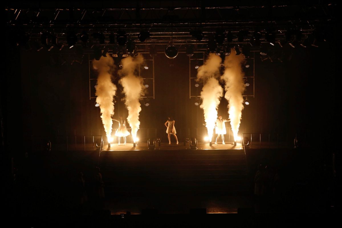 2部のセットリストは歴代のシングル表題曲を発売順にパフォーマンスする、という企画にファンが歓喜する中、全曲が終わると、カウントダウンムービーが流され、いよいよ新メンバーのご披露となった。まずはポップアップに乗ってまず小久保柚乃が登場。