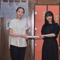 この日はドラマゆかりの品のプレゼント交換も行われた。杉咲は、大阪・道頓堀を舞台に描かれた『おかえりモネ』にちなんで「のれんは劇場では楽屋にかけられるものでもあり、芝居の街・道頓堀の象徴とも言えます」と『おかえりモネ』特製デザインの“のれん”。
