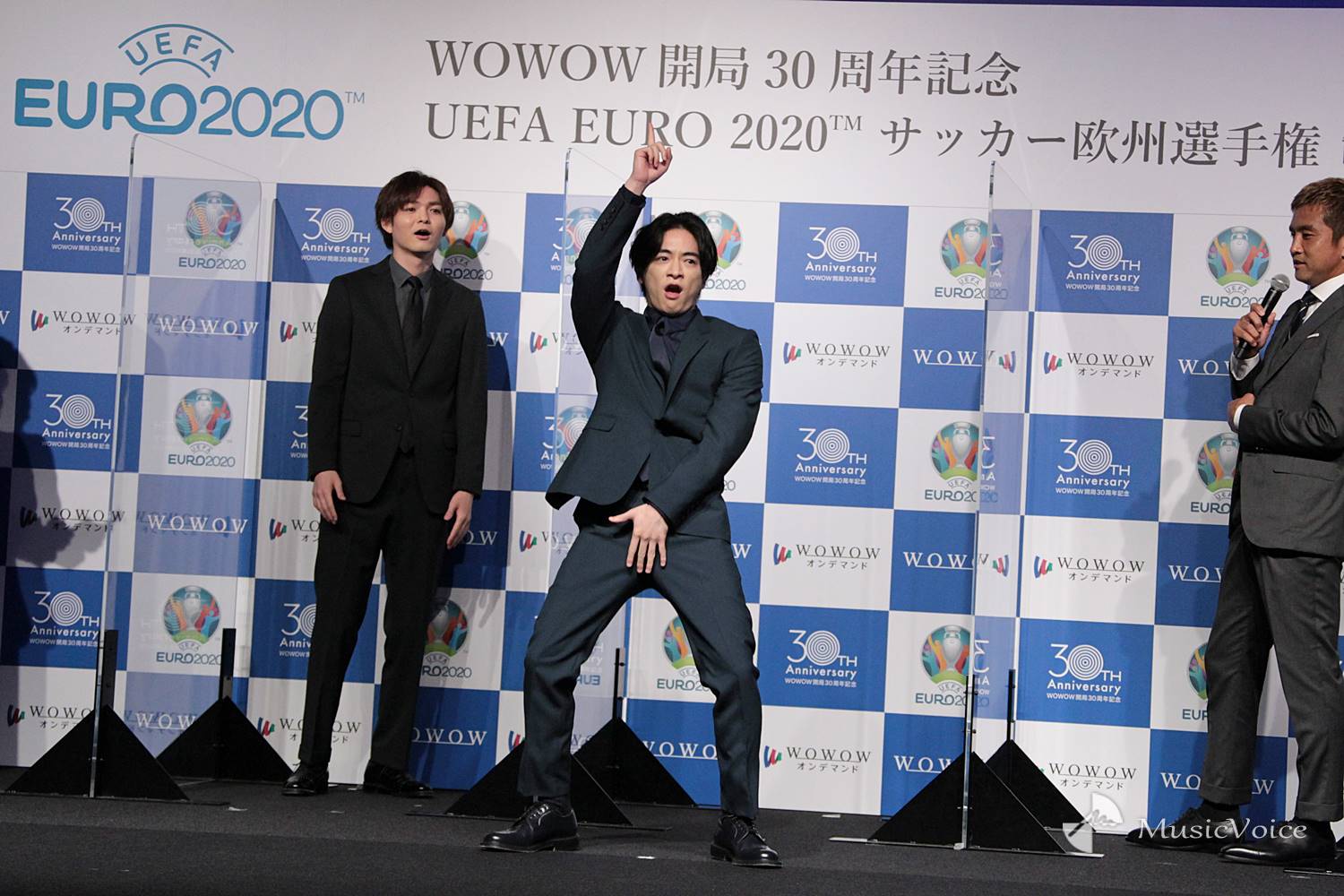 Hey! Say! JUMPの薮宏太と知念侑李が25日、都内で行われたWOWOW『UEFA EURO 2020』制作発表記者会見に出席した。この日は、サッカー元日本代表の稲本潤一選手、そして元サッカー選手の野口幸司氏も登壇した。