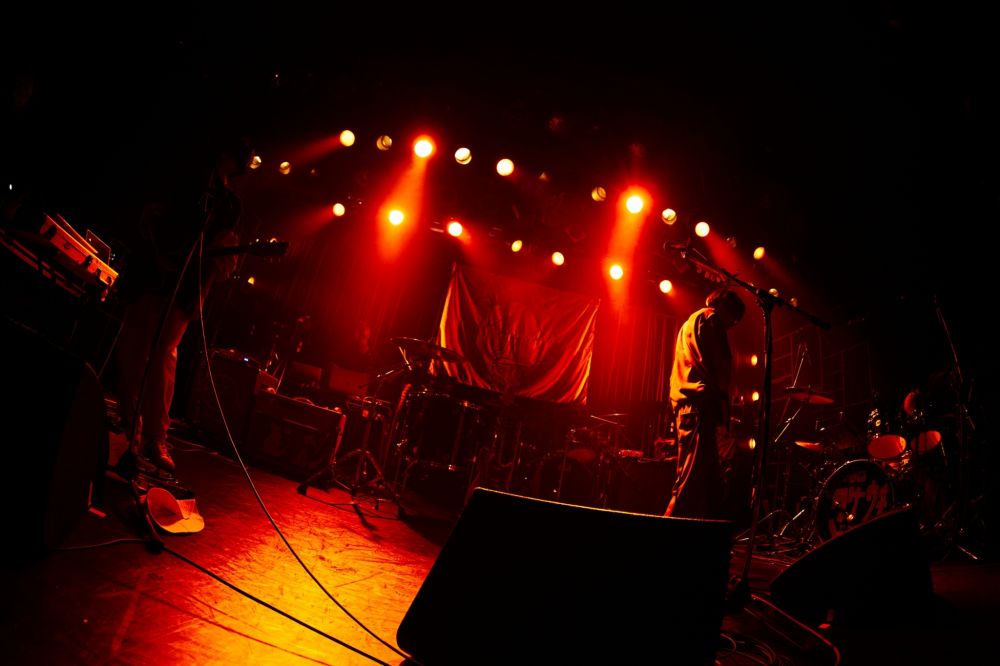 そして「BLT LIVE BOOSTER vol.1」のトリを務めたのは、この日が初ライブのPEOPLE 1。「2019年末、Deu、Takeuchi、Itoの三人によって結成されたバンド」ということ以外の情報がない彼らが暗転のステージに登場すると、何とも言えない緊張感が会場に広がっていき、そんな緊張感をかき消すかのように1曲目「さよならミュージック」が演奏され、PEOPLE 1が初めてファンの前に姿を現した。客席から見て、左からDeu、Ito、Takeuchiと並び、その後ろにサポートメンバー2名がいる変則的なステージ配置からも、独自の活動スタイルを守ってきたPEOPLE 1らしいこだわりが感じられた。2曲目「フロップニク」、3曲目「スラップスティック・ガール」とPEOPLE 1の楽曲群のなかでも特に中毒性の高い2曲に続けて、4月28日にMVが公開されて早くも人気曲になりつつある「ラヴ・ソング」が披露された。その後、はじめてのMCのなかでItoが「もっとあのときああしていれば良かったな、と思ったときに自分を許してあげられるような曲です」と紹介をして未発表曲「魔法の歌」を初披露し、客席からは大きな拍手が沸き起こった。新曲を聴いた高揚感が収まらないなか、「常夜燈」「113号室」「アイワナビーフリー」とPEOPLE 1のヒットナンバーが続けて演奏され、会場は多幸感と熱気に溢れた。そして最後に「東京」「イマジネーションは尽きない」で会場をさらに熱く盛り上げ、PEOPLE 1にとっての記念すべき初ライブは幕を閉じた。