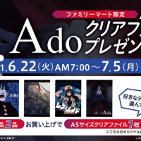 Adoが、6月22日朝7時より、全国のファミリーマートで『Ado』キャンペーンの実施することが21日、わかった。