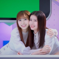 RIMAとMIIHIは、撮影合間に二人仲良くリラックス。RIMAは最近ダジャレにハマっているそうで、NiziUのメンバーに「ダジャレを考えて」と無茶ぶり。MAKOが「くつが床にくっついた」とジェスチャーをつけて披露したが、全員がシーンとしてしまい思わず笑ってしまうなど、休憩中も大盛り上がり。