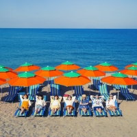 グループ写真のBTSは、海を背にしてビーチチェアに横になっている姿だ。 青い海と海辺、そして安らかに自由を満喫するBTSまで、見る人にさわやかさをプレゼントする。