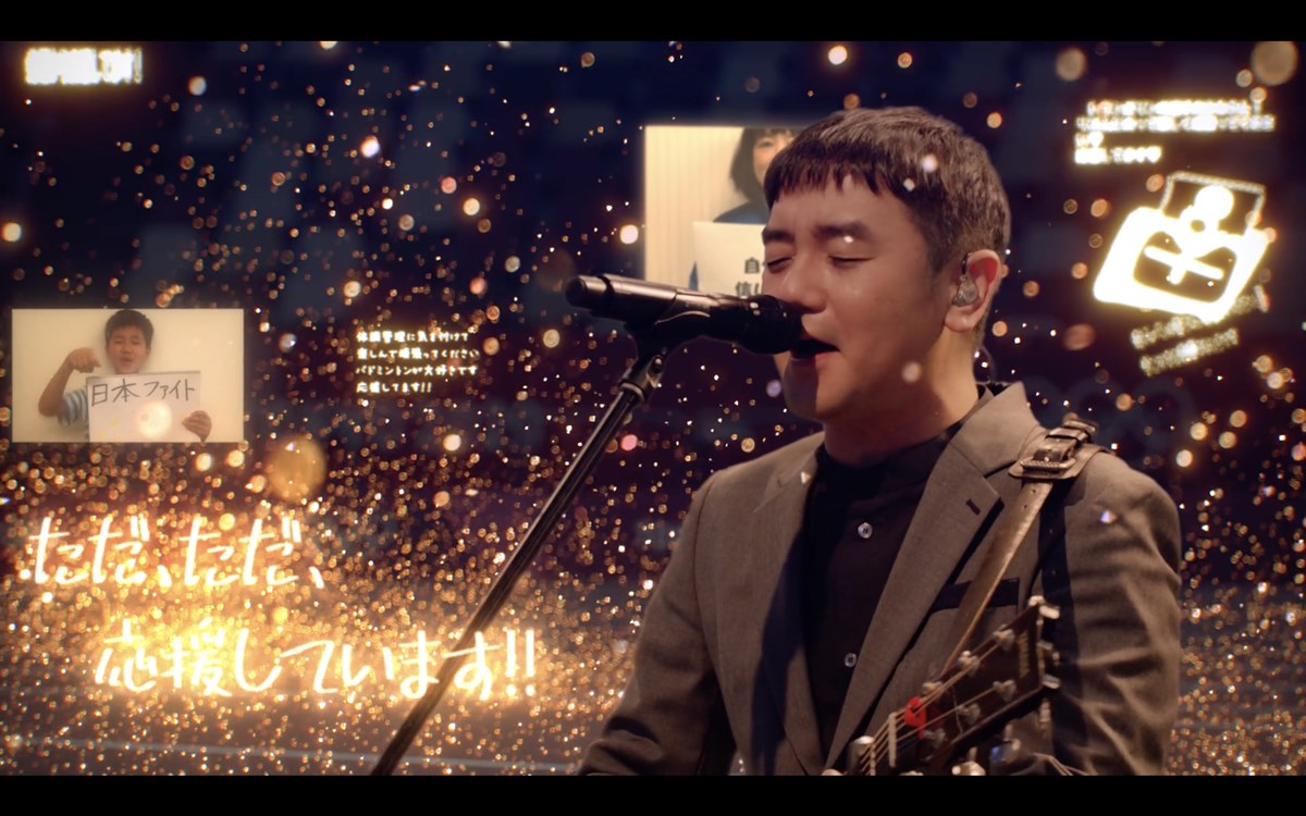 その後、ゆずが登場。北川悠仁と岩沢厚治が真っすぐ前を見つめ、北川は「東京2020オリンピックに向けて日本中、世界中の選手の皆さんが最高のパフォーマンスが発揮できるよう、この曲をエールとして送ります」と挨拶。2人で「栄光の架け橋」を歌った。