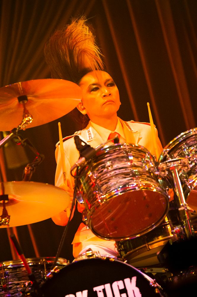 二部のバンドセットは従来通りのライヴセットだが、こちらでもニューアレンジされたナンバーが盛り込まれているので油断ならない。そもそもこの公演のメニューは、“魅世物小屋”のような佇まいをもつ今回の会場の雰囲気に合わせてセレクトしたそうで、特に二部の方のメニューは倒錯と夢幻の世界が色濃い。疲弊するような情報ばかりが飛び交う毎日の中で、この瞬間だけはそんな現実を忘れさせてくれる。目の覚めるような、もしくは、心安らぐような夢を見させてくれる。それこそがエンターテインメントの真価であると思う。観客が夢から醒めてしまわないように、一度も言葉を発することなく、魅せる歌と演奏でコンセプトを貫いたところも印象的だった。しかしながら、そんな中でも彼らが伝えたいメッセージは、本編の中でしっかりと伝えられていたのだ。一部二部を通して櫻井敦司(vo)が何度か送っていたのが、人差し指と中指をクロスする“Good Luck”のハンドサイン。これからアーカイブをお楽しみになる方々には、ぜひこのポイントにも着目していただきたい。