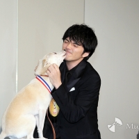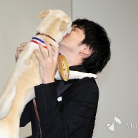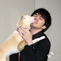 【写真】前々回の舞台挨拶でも“相棒”ちえにキスされていた林遣都