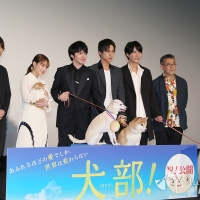 林遣都(30)、中川大志(23)、大原櫻子(25)、浅香航大(28)、篠原哲雄監督(59)が22日、都内で行われた、映画『犬部!』初日舞台挨拶に登壇した。この日は主題歌「ライフスコール」を担当したNovelbrightの竹中雄大(25)も応援に駆け付け、主題歌をアカペラで歌った。