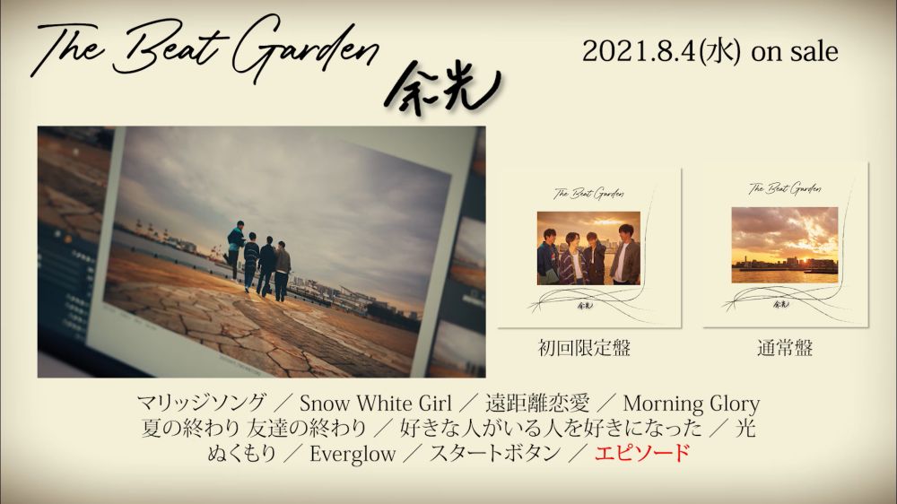 THE BEAT GARDENが、8月4日にリリースする約2年5月ぶりとなるアルバム『余光』に収録された全11曲のダイジェスト映像を23日、YouTube上で公開した。