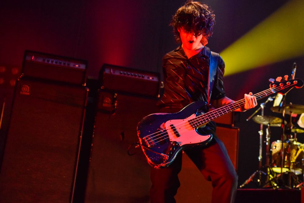 1曲目の楽曲(タイトル未定)から、ハンドクラップに包まれて“For Freedom”へ。まず飛び込んできたのは、音のカッコよさ。磯部寛之(B・Cho)が支えるボトムが際立つと、白井眞輝(G)のカッティングの精度が高まるという相乗効果。ユニゾンのフレーズが多いところも関わっていると思うけれど、そこに対するリアドのかみ合い方も絶妙で、息をのんだ。続いて“Boo!”と、これまたグルーヴありきな楽曲。ドラマー冥利に尽きるだろうけれど、いくら元々の技術がある彼でも、かなり鍛えたのだと思う。だからこそ、それによって生まれた気持ちよさは格別なんだろう。もちろん、リアドのみならず、他の3人も。このツアーを実現できたこと、信念を貫けていることで、自信も高まっているのか、貫禄も出てきたと思う。「とべますか大阪!?」という川上洋平(Vo・G)のひと言からはじまったのは、「Girl A」。サビで清涼感のある歌声を響かせ、エンディングではサングラスを外し、堂々と手をあげた。
