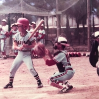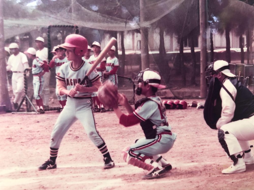 父が地元の与論島でリトルリーグの監督をやっていました。生まれたときは右利きでしたが物心つく前から(野球で有利とされる)左投げ左打ちに育てられました(笑)。リトルリーグに所属していた当時、与論島は観光ブームで景気も良く、父兄の皆様をはじめとても応援していただきました。甲子園に高校野球を観戦しに行ったり、姫路・高槻・岸和田・泉佐野リトルの相手チームの家にホームステイしたり、沖縄の米軍基地のチームと対戦してホームステイさせてもらうなど、沢山の経験をさせていただきました。小さな島でしたが、とても恵まれていたと思います。逆に同年代のアメリカの少年が与論島にきて家に泊まった時、母の味噌汁は飲まずにジュースばかり飲んでいたのは印象的でした(笑)。