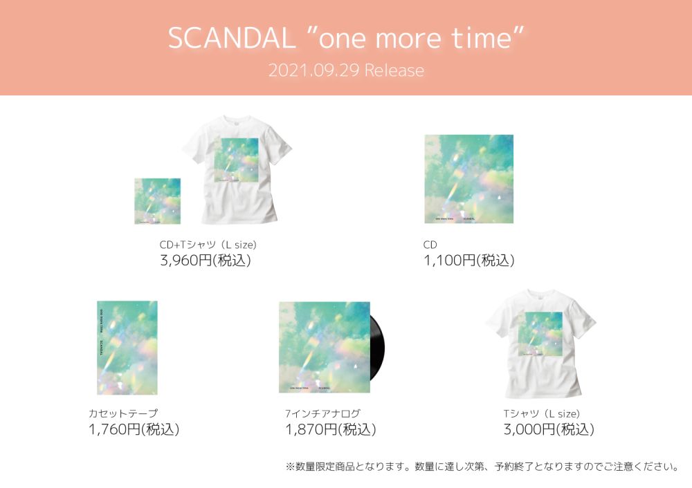 アンコールでは、9月29日(水)に2021年第3弾シングル「one more time」をリリースすることをサプライズで発表し、同曲の初披露も行いました。楽曲は、ナチュラルに音楽を楽しむ、今のSCANDALのポジティブなマインドが詰まった希望に満ちたポップナンバー。今作の形態は、前作のシングル「eternal」「アイボリー」と同様、CD、Tシャツ付CDのほか、カセットテープ、7インチアナログなどのグッズを同時に発売し、発売日よりストリーミング、ダウンロードサービスでも配信リリース。21日よりシングルの予約特設サイトがオープンし、各商品の予約受付がスタートした。各商品ともに数量限定商品となるため、数量に達し次第、予約終了となる。