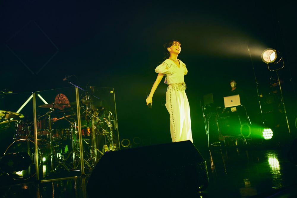 さらに言えば、eillもMCで「最近不安になるようなことがたくさん起きてる気がしてて。あれ、トンネルってこんなに長かったっけ? 光が見られるのはいつだっけ? って思っちゃって自分にのしかかってくる」と語っていた通り、コロナ禍の世の中は誰しもにとって先が見えなくなってしまっている。それゆえに、具体性のない「大丈夫だよ」は人の心を安堵させる力をほとんど持たなくなってしまった。だからこそ、自分で光を見つけられるようにeillは導いていく。コロナ禍ではネガティブな連鎖が起きているように感じるが、派手なスポットライトではなくたとえ豆電球のような灯りでもいいから、自分の心に光を灯すことで、隣にいる人の心もほんのり照らすことができるかもしれない。それが連鎖して、周りに光が増えていくかもしれない。「みんなが照らしていく番だ」という言葉からは、そんな温かい光が連鎖反応のようにゆっくりと一面に広がっていく景色も目に浮かんだ。