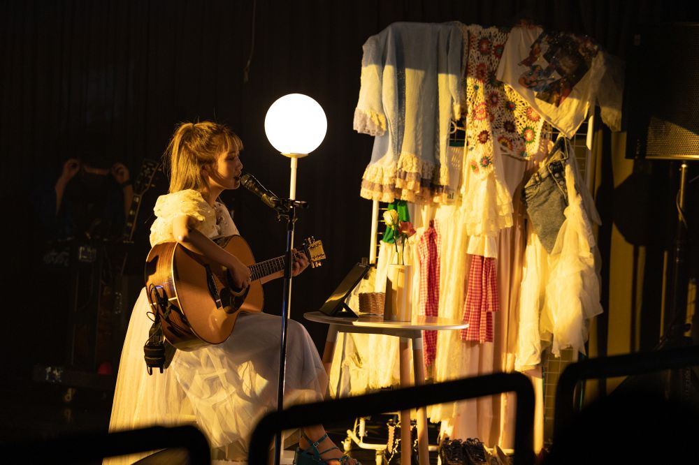 夏祭り×自宅をイメージしたセットは、井上苑子自身がペンキで色を塗ったドレッサー風屋台や、過去のいのうえ夏祭りの衣装などを飾り、ステージ上を彩った。