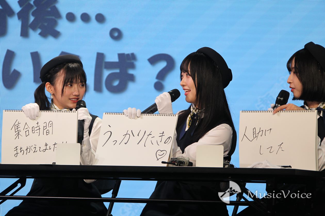 この日司会を務めた福田は「いろいろあったけど、しんみりしてもしょうがないので、楽しいことを」と呼びかけてゲームコーナーへ。まずは「みんなで答えを一致させるゲーム」。≠MEとの対バンで行ったゲーム企画で、負けたら「語尾を変えて自己紹介」という罰ゲームが用意された。