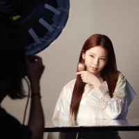 ブルーのインナーカラーが映えるアップのヘアスタイルで登場したNINA。撮影中はカメラに写っていない手先まで意識したポージングが印象的で、ポーズに合わせて様々な表情を繰り出していた。普段の無邪気な笑顔は封印し、カメラに真剣な眼差しを向けるNINAにブルーのアイカラーがとても良くマッチしていた。