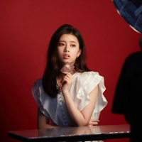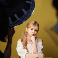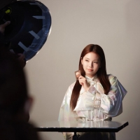 ボリュームのあるフリルの袖が特徴的なトップスで登場したRIMA。レッドのアイカラーがモードな雰囲気を醸し出し、自信に溢れた力強い目力を披露。撮影中、商品の見せ方を自分からカメラマンに提案する姿はさすが。椅子を使ったポージングにも挑戦し、まるでファッション撮影を楽しんでいるかのようだった。