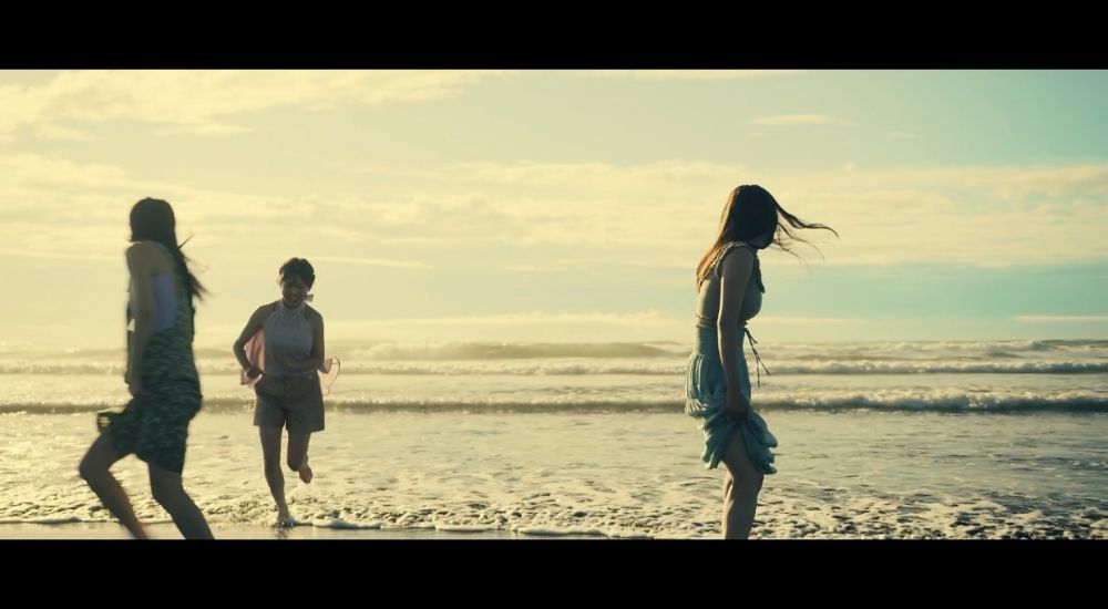 メンバーそれぞれに見所を聞くと、「海での撮影で、3人で波ではしゃいでいるシーンです! リップシーンでの切ない表情などとは逆に、夏を楽しむ私たちの自然な部分を見ていただけるかなと思います!(RUI)」