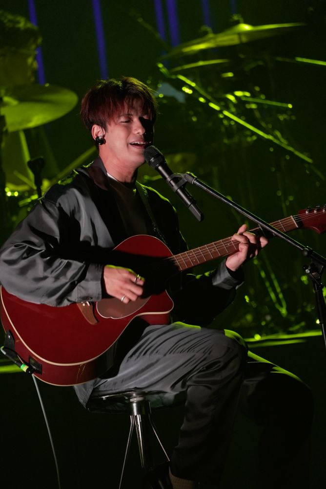 アコースティックギターを抱えた彼は、次の曲への思いを語り出す。「僕は、昨年7月にメジャーデビューしました。役者と音楽の両方をやらせてもらえてる環境は、ほんとにありがたい気持ちでいっぱいです。ただ、正直結構悩んだ時期はありました。MORISAKI WINとしてオレは世の中に何を言いたいんだろうとか自問自答する時間がすごくあったんです。そのときに近いスタッフに相談しながら曲を作っていく中で、まずはありのままのMORISAKI WINを見てもらうことが大事だって話になったんです。役者は台本があって誰かを演じるものですが、音楽は僕が言いたいことを楽曲でみなさんに伝える場なんです。僕は役者やる以前にそこからスタートしてるので、ここが原点なんです。音楽は、何かあって悩んだときに戻れる場所、やり直せる場所だって思いを曲に盛り込んでもらいました。こういう日なので、弾き語りでやりたいです」。そう語ったMORISAKIは「START IT OVER」を届ける。オレンジの照明の下で椅子に座りアコギを弾きながら、ただ目の前の僕を見て欲しいという新しいスタートへのシンプルな気持ちを歌で紡いでいく。彼の思いを受け取った観客は惜しみない拍手を送った。