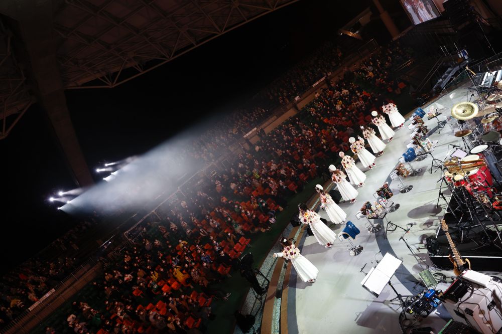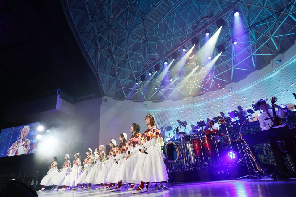 秩父ミューズパーク野外ステージにつめかけたファンも待ちに待った9人のパフォーマンスに、声は出せないものの、手を上げたり、万雷の拍手などのリアクションで応え、会場のあたたかい一体感を作っていった。