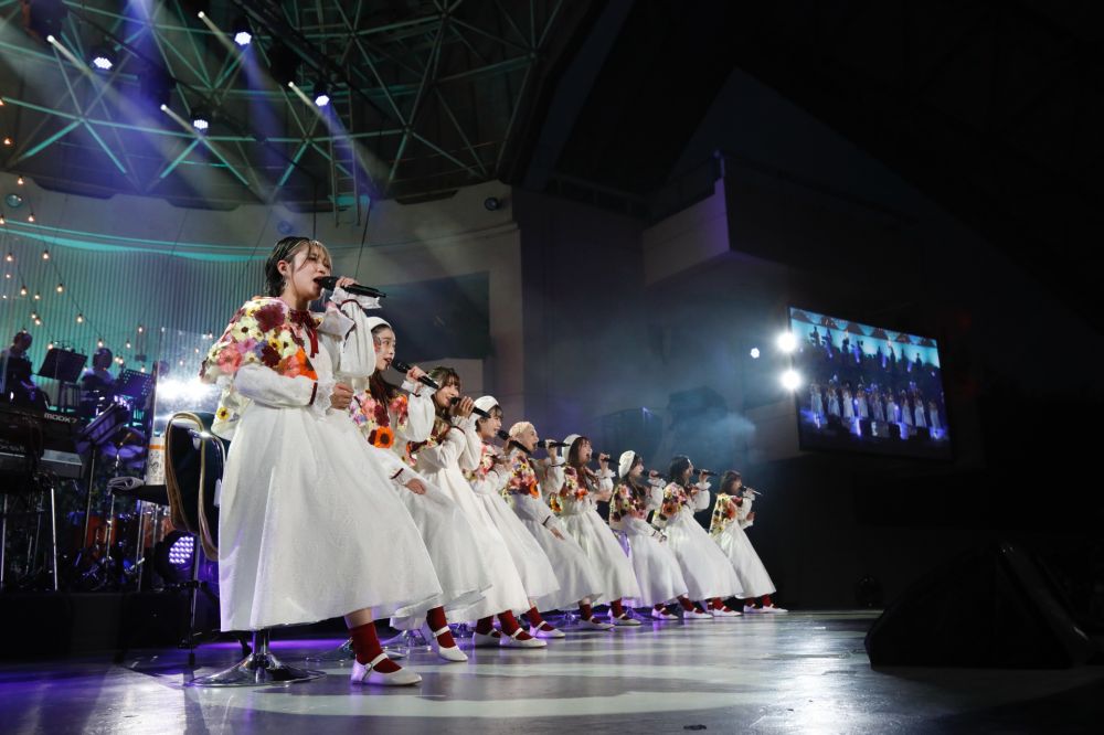 そして星名美怜がこちらも大ヒット曲「GLAMOROUS SKY」を力強く歌ったところで、中山莉子がテンション高く、藤井隆の名曲「ナンダカンダ」で会場の空気を一気に和ませ、トリの柏木ひなたにつなぐ。彼女はKing Gnuの「白日」を全身全霊のパフォーマンスで披露。感動的に締めくくった。9人の個性と選曲、発表順など趣向をこらし、見ごたえのあったソロコーナーにファンは万雷の拍手で応えていた。