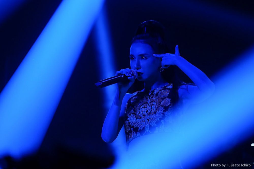 続いてのMCで「去年はステイホーム中で仕事がキャンセルになり歌う機会もなく、孤独な時間でした。そしてたっぷり時間があったから自分と向き合う時間もありました。今まで出せなかった負の部分を出してみようと思って『DarkPop』というジャンルを命名し制作しました」と、5月から4ヶ月連続デジタルシングルをリリースした楽曲について語り、「Rebellious」、「Can’t Breathe」、「Love & Hate」、「DRAMA QUEEN」の4曲を連続でパフォーマンスした。