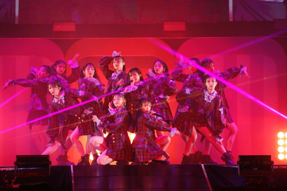 終盤では、改めて2グループ合同でハードなロック曲『いらない ツインテール』(=LOVE)を直情的にパフォーマンスし、=LOVEの人気曲『「君と私の歌」』(=LOVE)、『青春″サブリミナル″』(=LOVE)と立て続けに披露。2組の息の合った迫力あるダンスパフォーマンスも相まって、会場はこの日一番の大きな拍手で包まれた。ラストの『夏祭り恋慕う』(=LOVE)では、ステージ前方の吹き出し花火に加え、ステージ後方の夜空には、大掛かりな打ち上げ花火が何発も打ち上げられ、会場は『夏祭り』一色に染まる中、本編は終了した。