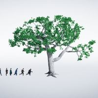 ジャケットにデザインされた木は収録楽曲の約3,000行の歌詞の意味を、機械学習によって数値データ化。