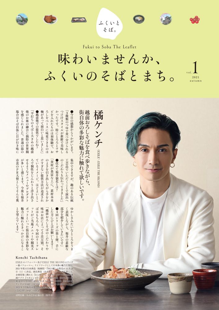 福井嶺北のそばの魅力を中心にご当地グルメや観光スポットを巧みに表現したリーフレット『ふくいとそば。The Leaflet』が、LDH JAPANの制作監修により完成、11月8日より順次配布開始されることが発表された。2021年度及び2022年度の秋冬に計4回発行される同紙の表紙には橘ケンチ(EXILE/EXILE THE SECOND)と高橋愛(女優/モデル)がそれぞれ2回ずつ起用されることも決まっている。
